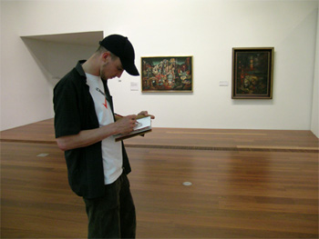 At the appointed time, each of us will take out a notebook and pencil, and begin making whatever sketches or notes we feel inclined to jot down. Whether this be sketching, copying, reviewing, information gathering (copying information from NGV labels in these exhibitions is not permitted), doodling, creating original art or just adding to one's Xmas shopping list ... just behave normally. That is all we are asking to do.